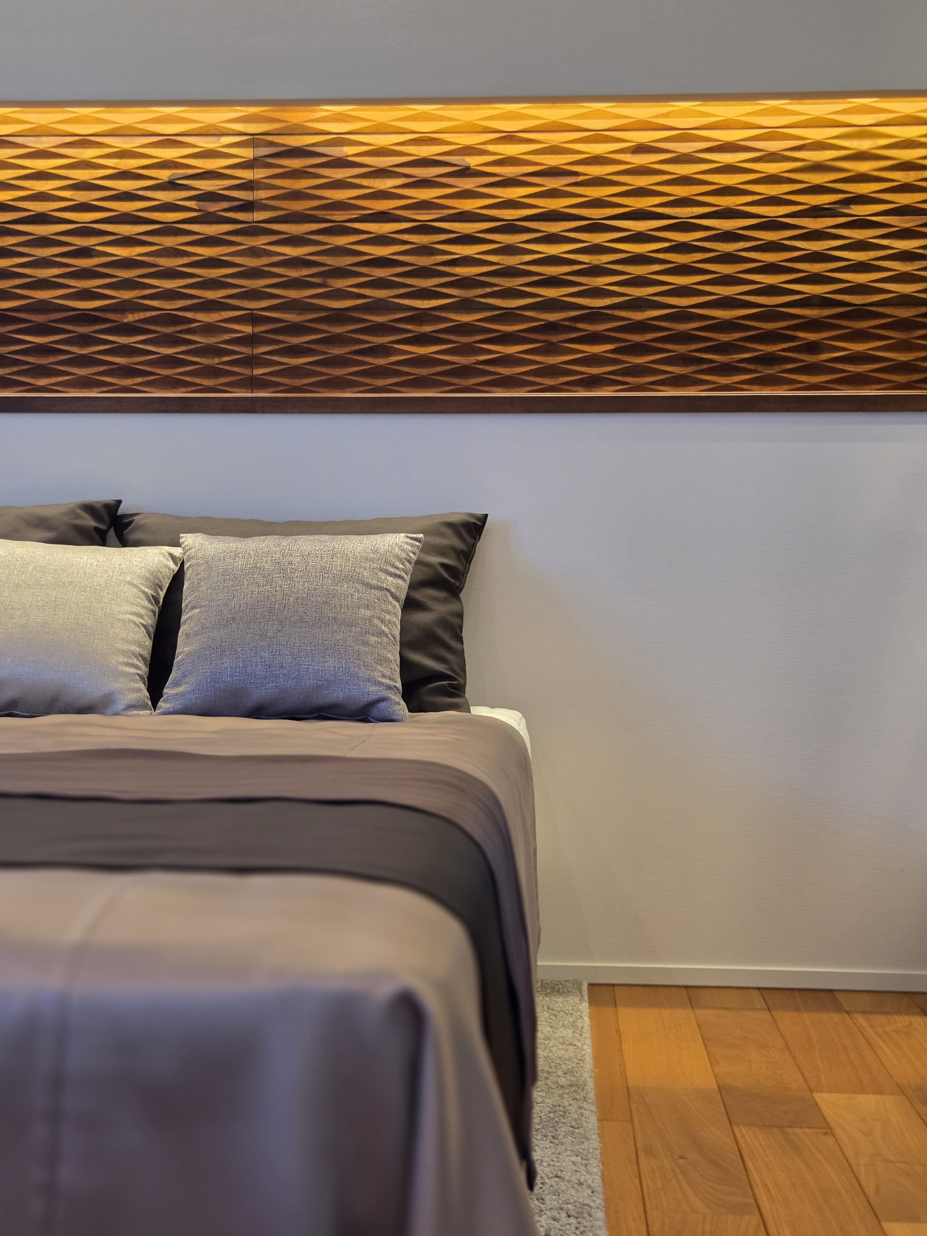• 主寝室の壁面にはデザインウォールを採用。ラグジュアリーな憩いのシーンを演出してくれています。